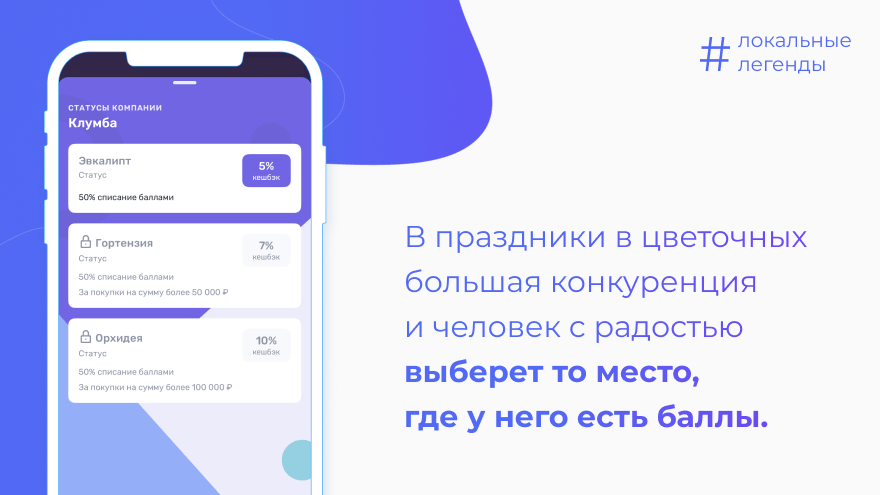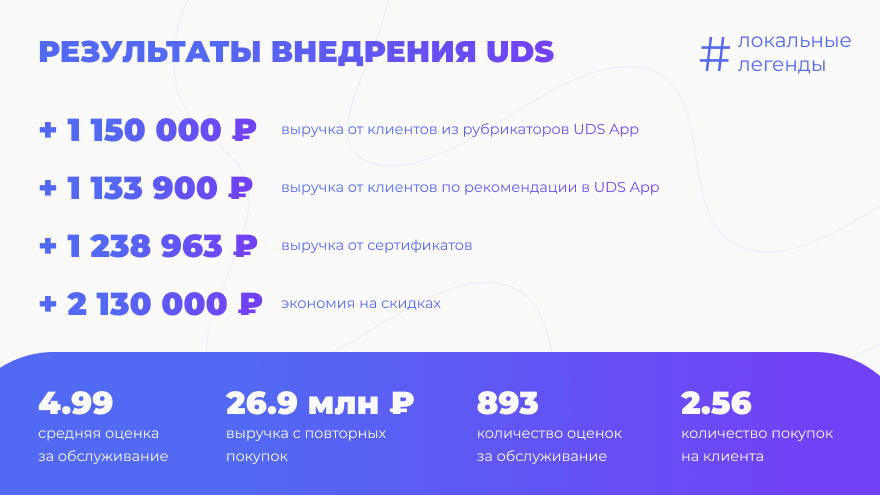 С программой UDS появилась возможность сегментировать клиентов и присваивать им различные статусы: «Орхидея» для самых лояльных клиентов, «Гортензия» для тех, кто покупает цветы 2-3 раза в год, и «Эпкалипт» для тех, кто покупает цветы раз в год. Эта сегментация позволила справедливо распределять кешбэк и процент списания суммы чека баллами, увеличивая тем самым лояльность клиентов и их возвращаемость.