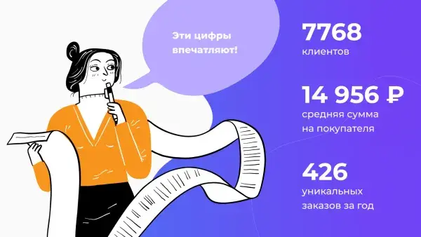 После запуска UDS база клиентов выросла до 7768 человек. Повторные покупки совершают 53%, средний чек на одного клиента — 14 956 ₽, а среднее число покупок на человека — 7,3.