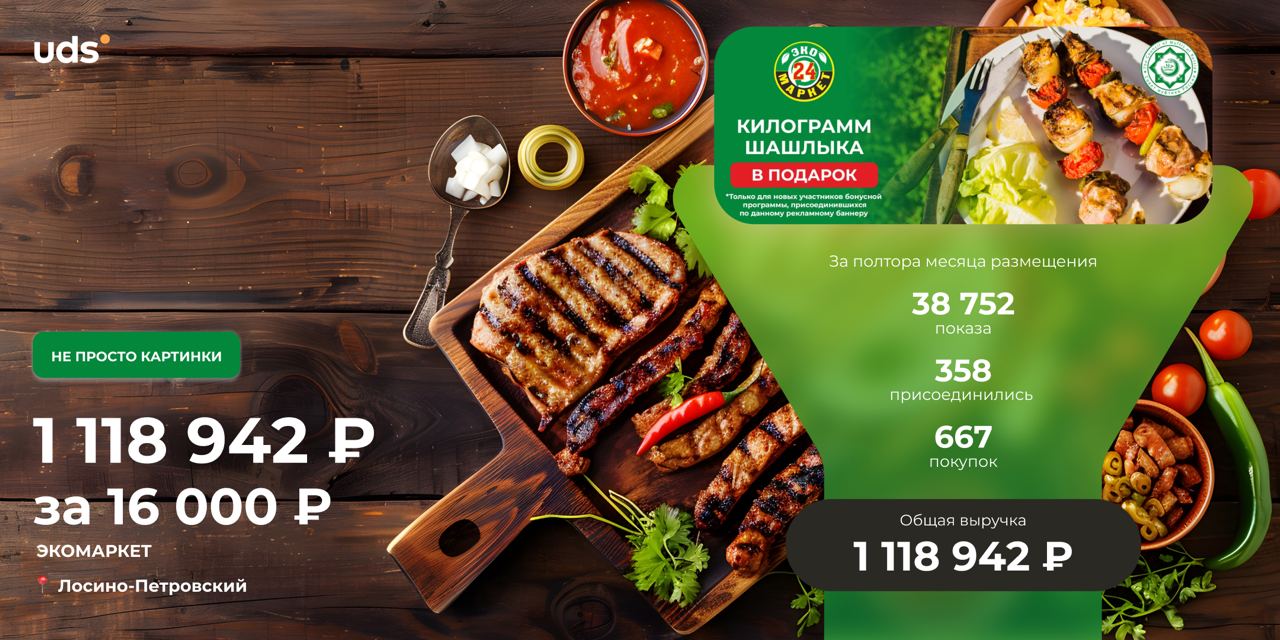 Такое грандиозное решение в преддверии майских праздников принял магазин халяльных продуктов «ЭКОМАРКЕТ» и разместили свой баннер на главной странице в приложении UDS, чтобы не только заявить о своей программе лояльности, но и порадовать потенциальных клиентов приятными, а самое главное — выгодными предложениями!
